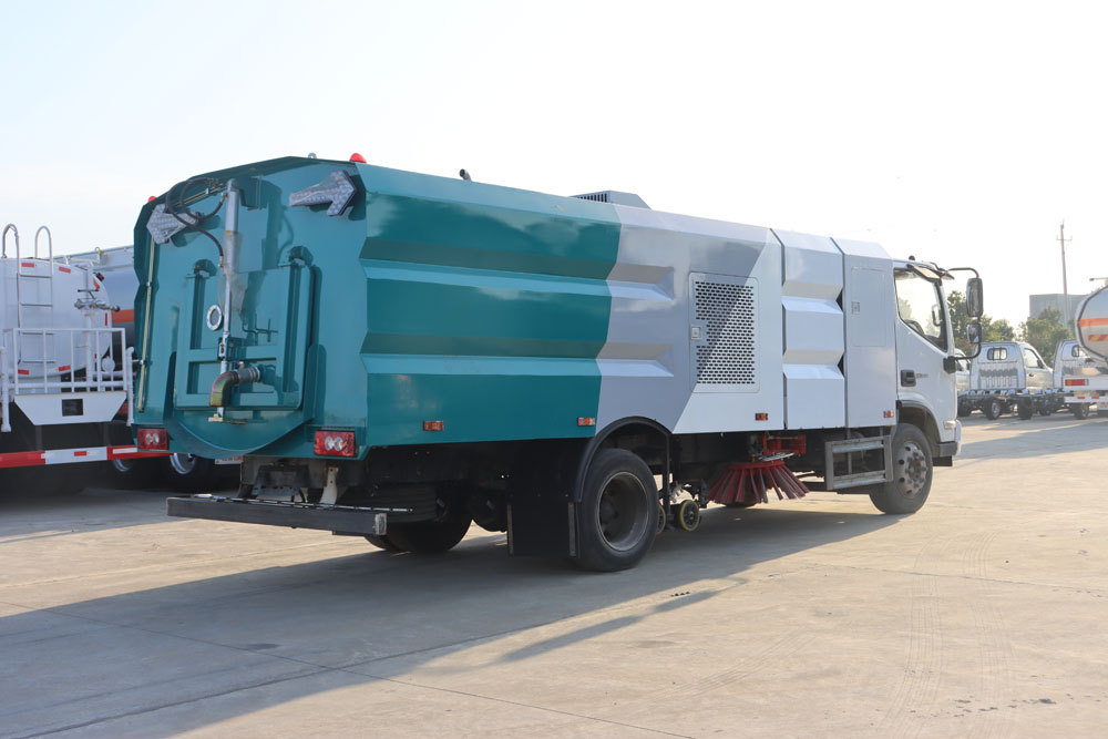 ● 清水箱和垃圾箱分體布置,有效空間利用最大化,一次連續(xù)作業(yè)時(shí)間長(zhǎng)。同時(shí)在作業(yè)過(guò)程中可通過(guò)污水排放裝置對(duì)污水進(jìn)行排放,隨時(shí)加清水繼續(xù)作業(yè);垃圾箱采用雙油缸自卸卸料,箱內(nèi)同時(shí)設(shè)有大流量高壓噴嘴,可快速?zèng)_洗垃圾箱