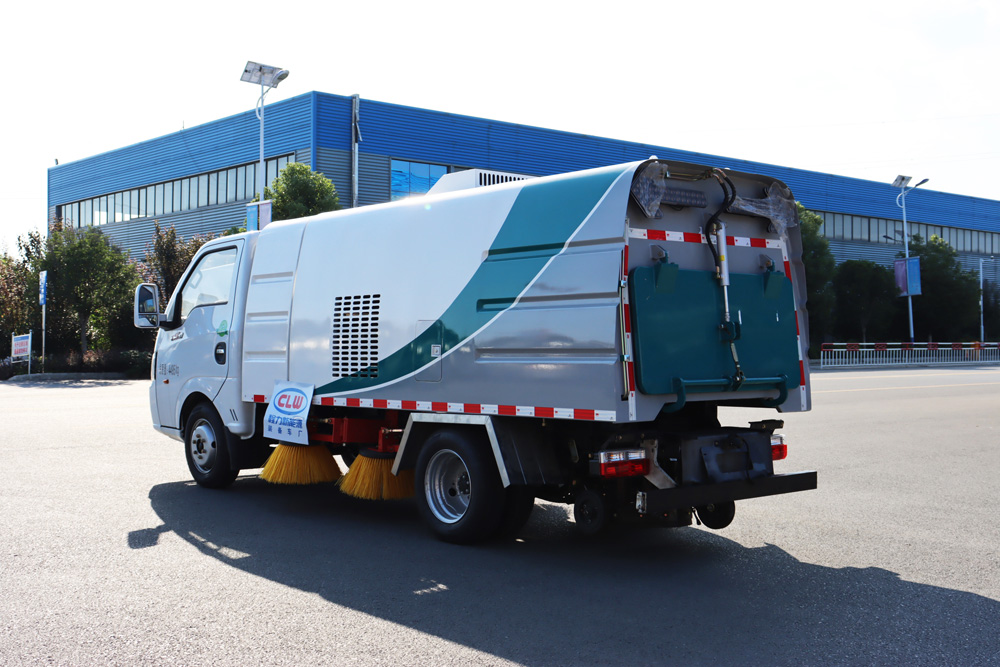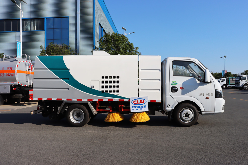 3、掃路車(chē)采用東風(fēng)純電動(dòng)二類(lèi)汽車(chē)底盤(pán)改裝,加裝風(fēng)機(jī)、清水箱、垃圾箱、左右立掃、帶噴水桿的寬吸嘴、掃盤(pán)降塵系統(tǒng)、液壓系統(tǒng)、專(zhuān)用裝置電控系統(tǒng)和副車(chē)架等改裝而成。