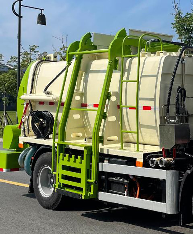 四、其他說明: 該產品是作為賓館、餐館、企事業單位等餐廚垃圾收集及運輸的專用車輛。 垃圾箱可實現箱內餐廚垃圾固液的初步分離,并采用大容積污水箱,提高產品裝載量; 電控系統采用無線遙控,并通過作業動作邏輯互鎖,保證操作的精準性,杜絕誤操作。